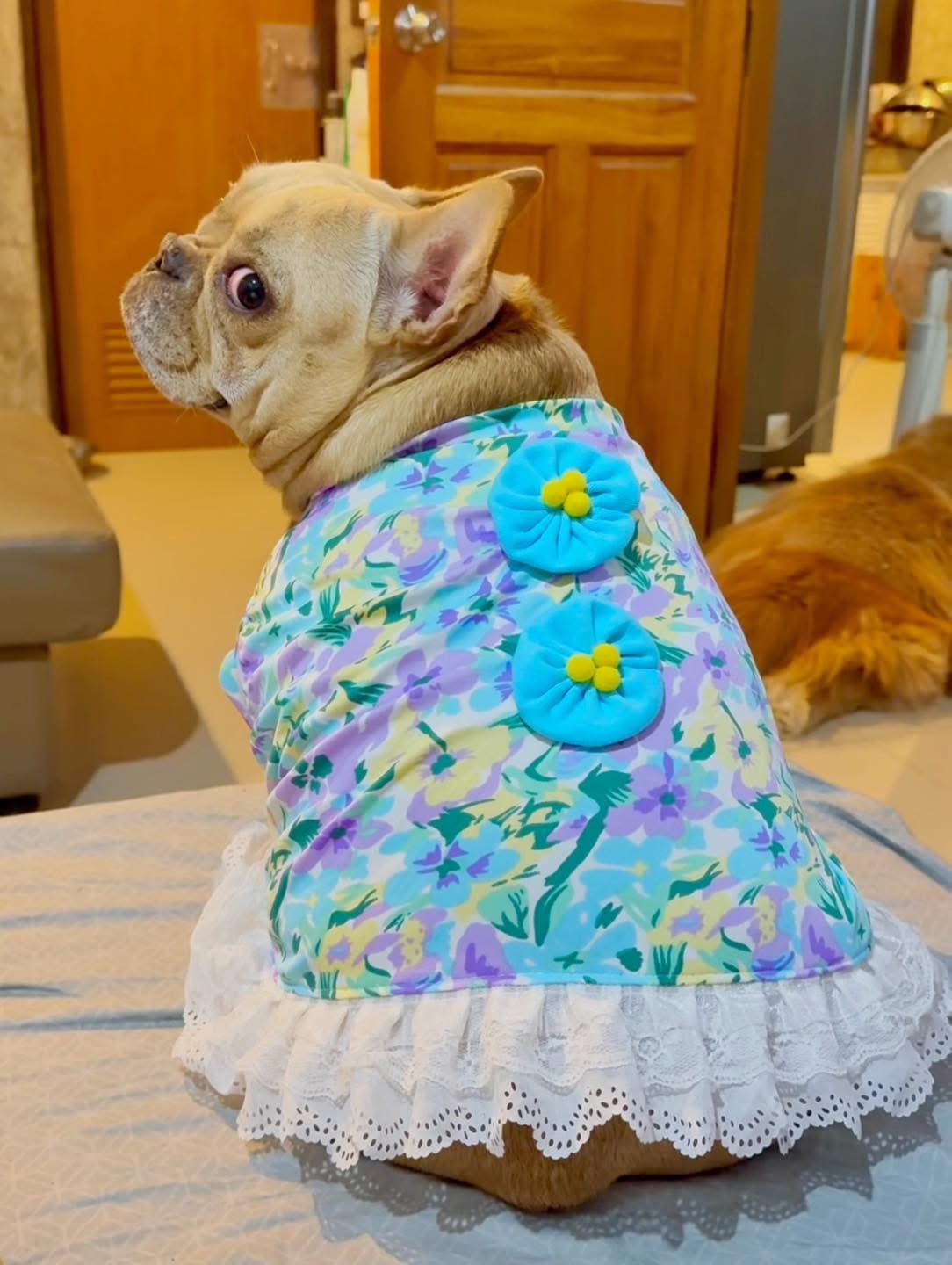 ชุดน้องหมาลายดอกไม้สีสันสดใส